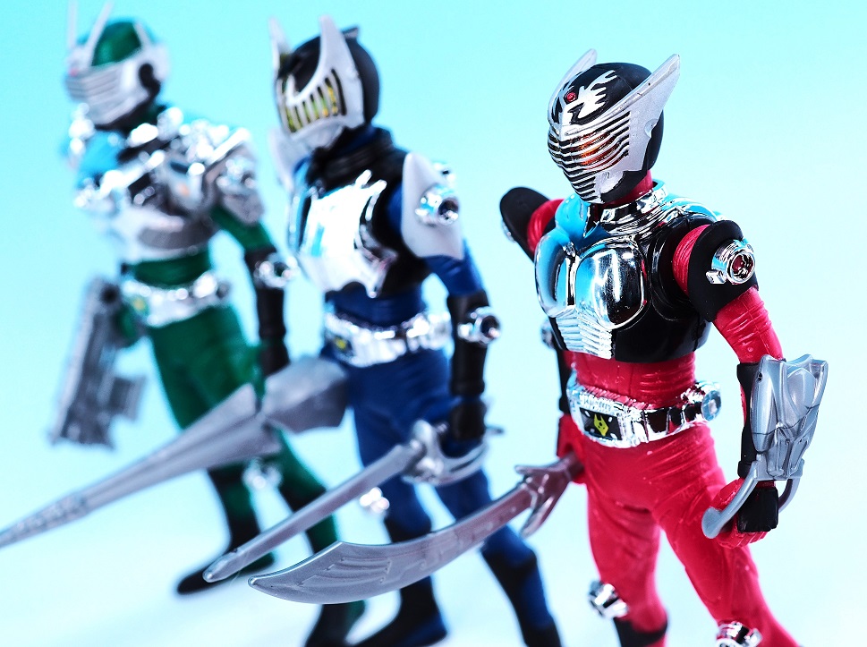 メッキパーツが龍騎よりも多いし、武器サイズも大きいので少しお得感ありますね。