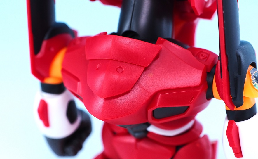 素体となる部分(ブラックの成形色パーツ)の上にレッド、ホワイトなどの外装を取り付けていく構造。