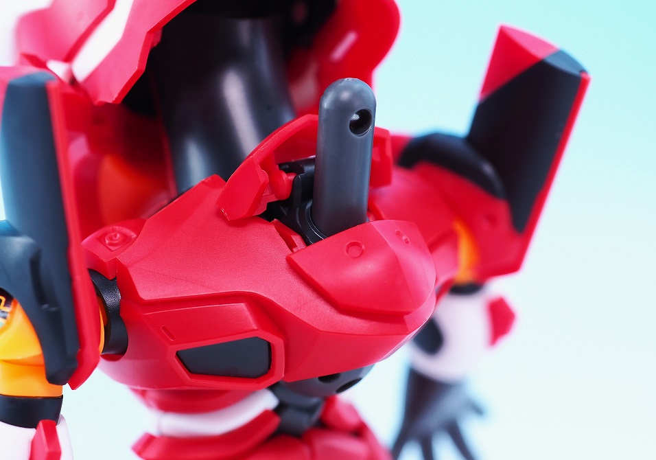胴の可動と合わせるとデフォルメ体型ながらも下を向く事も可能です。