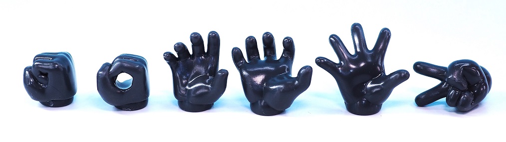 ハンドパーツは「握り、武器持ち、開き、平手、指開き、ピース」の6種類。