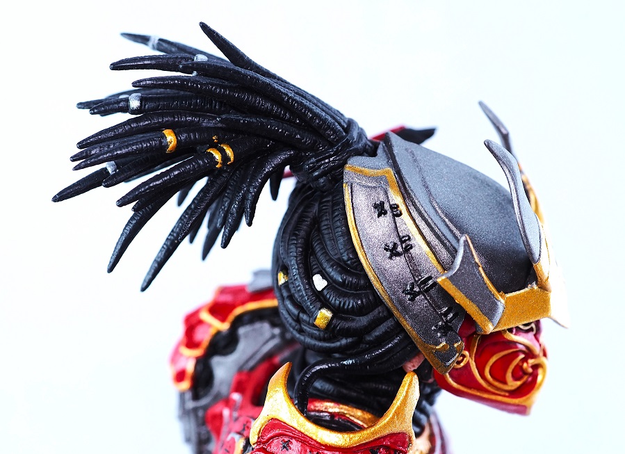 プレデターと言えばドレッドヘアーですが、サムライという事でちょんまげ風にアレンジされています。