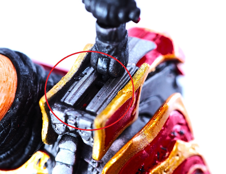 フィギュアはゴールドとレッドの塗装が全体的に明るめなのでゲームのグラフィックよりも派手に見えると思います。